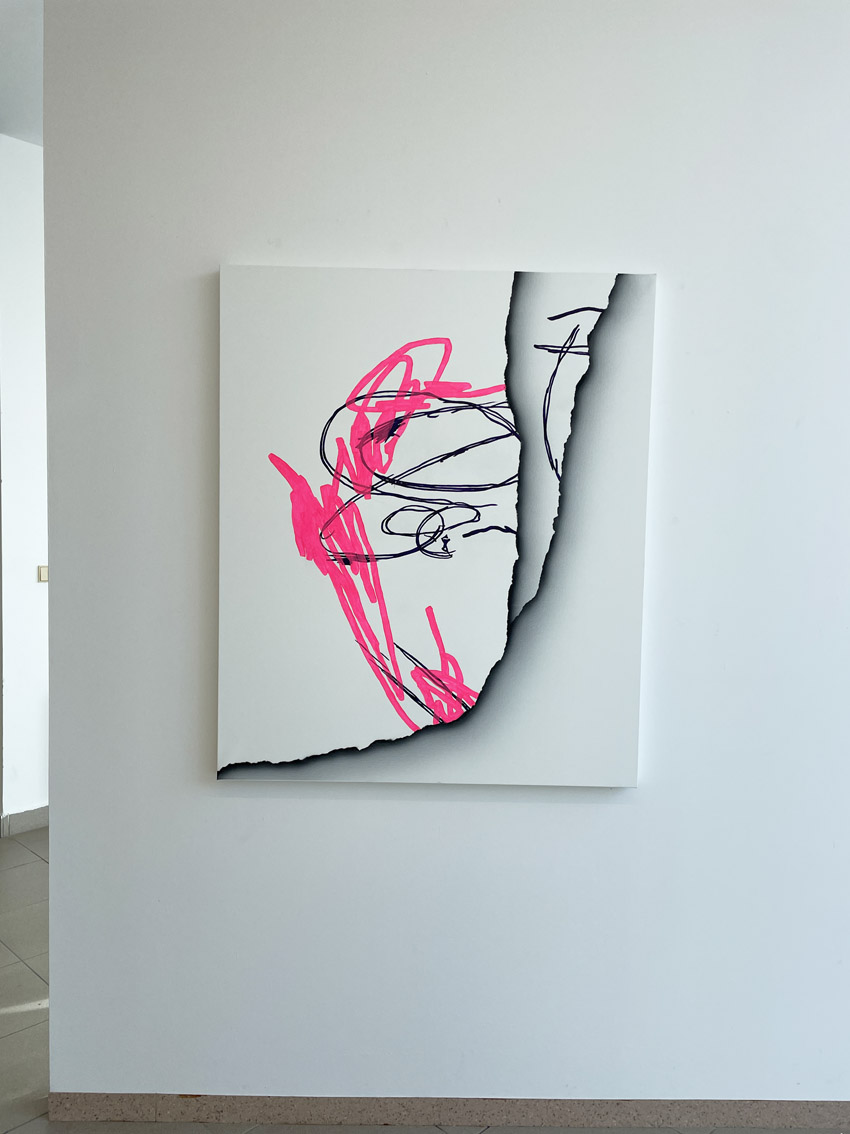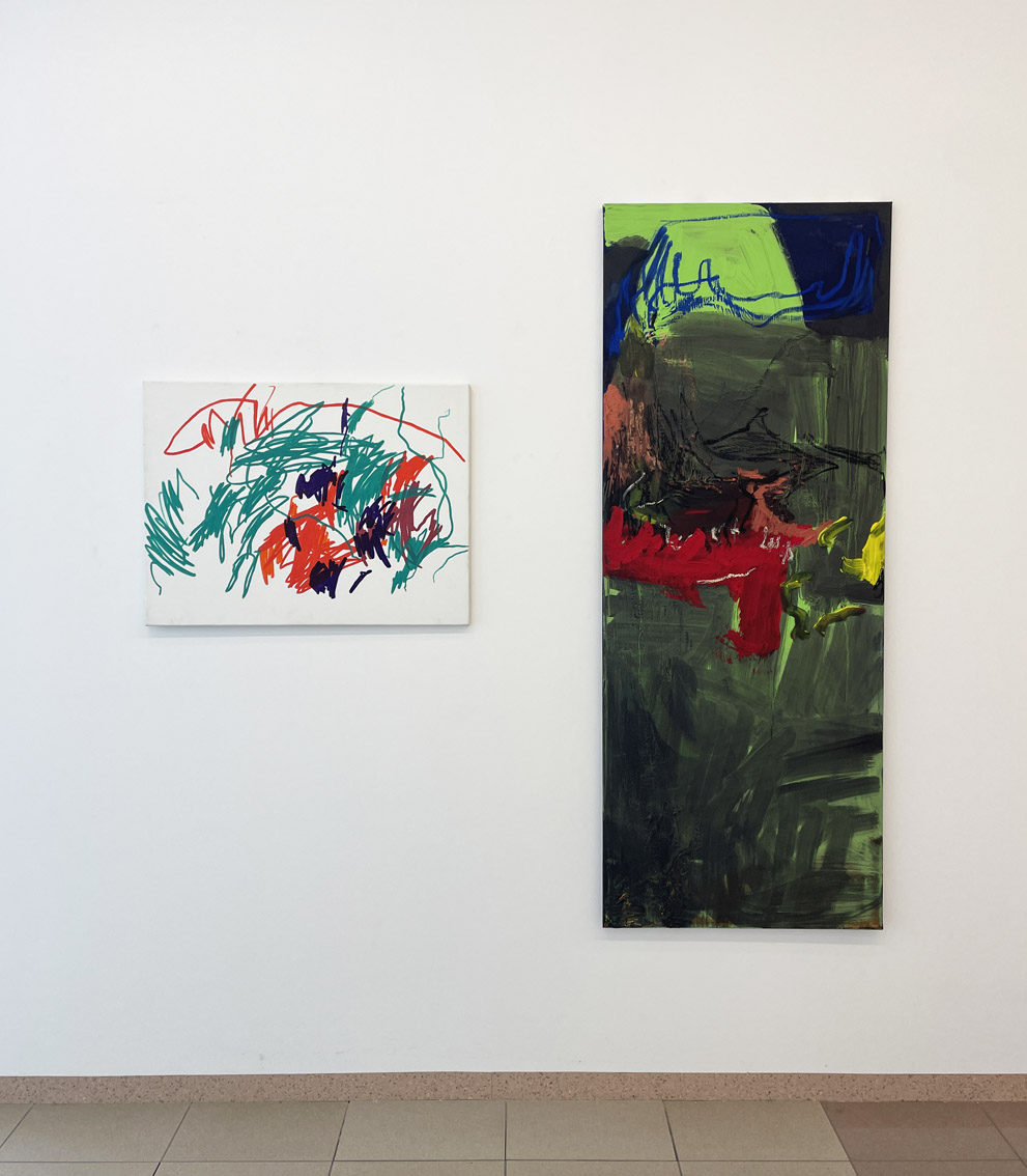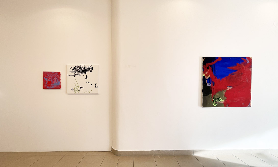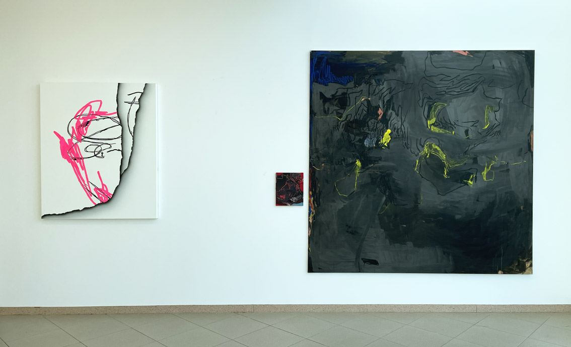 Výstava dvou autorů představuje v dialogu dvě série abstraktních obrazů, které jsou si formálně blízké, jejich konceptuální východisko je však zcela rozdílné. V sérii “Modely” užívá Lahoda matriku jedné z radikálních pozic modernismu, vyjádřenou např. v dílech skupiny Cobra. Jako součást reakce proti akademismu a naučenému, proti omezenému a neosobnímu výrazu, se členové skupiny Cobra inspirovali spontánním výrazem tvorby dětí, aby se tak dostali do stryku s jejich vlastním podvědomím. Tvrzení, že by toto mělo dílům umožnit komunikovat demokraticky a svobodně, se ukázalo jako jedna z modernistických utopií. Lahoda apropriuje spontánní, abstraktní čmáranice své malé dcery, které věrně kopíruje pomalou detailní malbou ve zvětšených formátech a transformuje je na originální obrazy jako metafory „modelů“ abstraktní malby. Série tak nastavuje ironické zrcadlo mýtům o genezi uměleckého díla, o kultu „tahů štětce“ - tomuto uctívání génia a spontaneity umělce vyjádřené v obdivu k tahům štětce, které by měly mít emociální a intelektuální kvality samy o sobě.